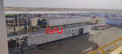 The solid control system this time includes circulation tank, slurry storage tank, five-stage purification equipment, slurry mixing system, barite recovery system, and slurry circulation auxiliary equipments such as sitting post room, industrial water tank, cantilever crane and material table, etc. It is a complete set of slurry circulation system.